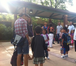 It was a wonderful experience, biking through the early morning’s leafy shade on our streets, and feeling the excitement and fear of the assembled crowd of young kids and their parents as we waited in the school’s courtyard for the opening bell. The simultaneous start of so many school careers, each one destined to play such a gigantic role in forming the future adults. I noticed quite a few shiny cheeks among the Moms, and even a few discrete fingers poking around the periphery of the sunglasses of the Dads.