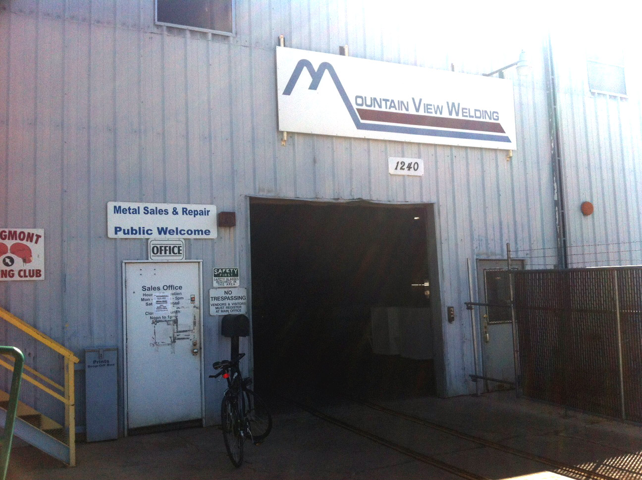 A few basic metal pieces can be found right in the hardware section of Home Depot and Lowe’s. But for serious projects, you’ll want to find a metal shop. Look up “welding” in your local business directory, and you’ll end up at a friendly old sheetmetal building in the industrial section of town where the guys have grease on their cheeks and awkwardly peck away on a beige 486 running Windows 95 to ring up your order. There you’ll probably find the best prices on steel, and will be available in lengths of up to 24 feet. I get my raw materials at “Mountain View Welding”, shown at left.