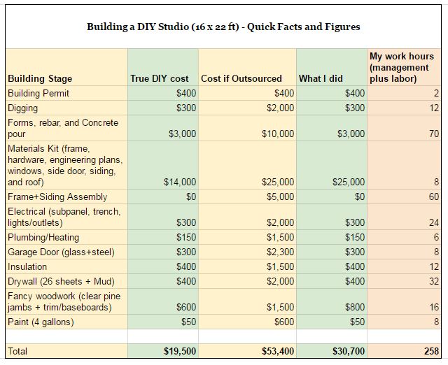 So in the end, it’s about 31 grand and a lot of good hard work, for a building that will pay ongoing productivity dividends and then return more than its cost when it is eventually sold. Overall, building this structure has been one of my happier projects in the last decade, and it’s one that I can recommend as an alternative to looking for a bigger house if you need to expand a little.