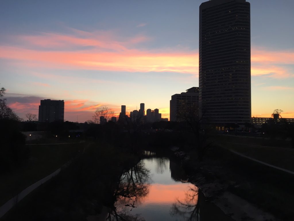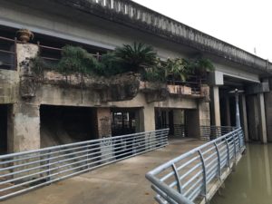 “My route takes me along the trail along Silver St. in an old Warehouse district, now an artsy district. Then along White Oak Bayou (Houston is built on bayous, not rivers!) as you near downtown, and under an old 150 year old bridge that has been built over.