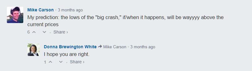 The general trend seems to be accusing me of “not doing enough research”, even after I dug into this stuff pretty deeply for a long, long time. I remain open to more information on the uses of Blockchain, but I’ve never seen a valid fundamental reason for betting on future increases in the prices of these things.