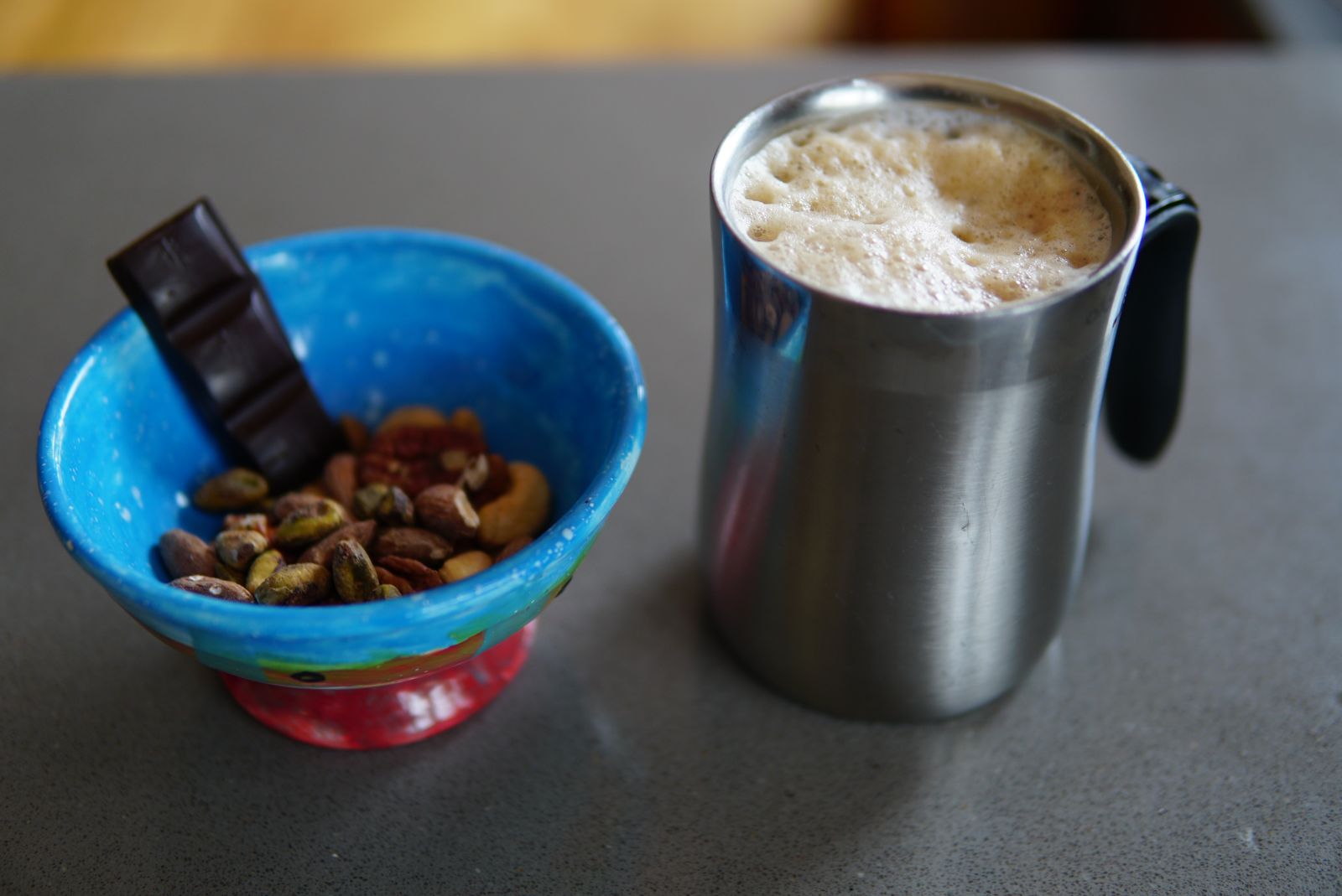 - A few squares of dark chocolate (85%)