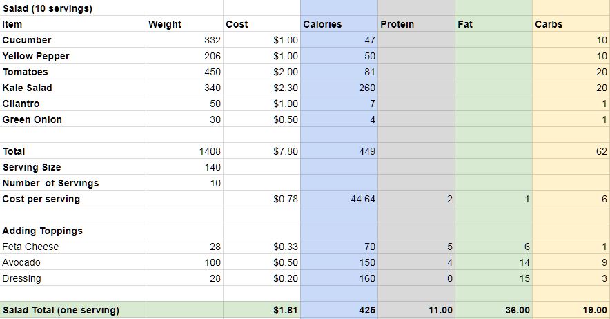 The first bit of crazy is that when I’m home, I eat almost the same thing every day. My son eats exactly the same thing every day* for now, and Mrs. MM runs her own show, perhaps with a bit more variety than either of us. This is a unique situation in our family that is different from most, and it adds extra complexity but fortunately not extra cost. You play with the cards you are dealt.
