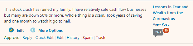 If I hadn’t discovered Mr. Money Mustache and the FIRE movement (less than 3 years ago thanks to the Tim Ferriss interview!), then today I would certainly still be in debt , with virtually no savings, and 2000x as stressed in this current crisis. But thanks to the “Your Debt is an Emergency!!” post (which I read so many times I could probably recite it by heart) I paid off all credit card AND student loan debt in 18 months (about $35K worth), I got myself a WAY better paying job than I had previously (thanks to the “Great News There’s a Recession Coming! ” post which taught me to ‘make hay while sun shines’), and I learned to save most of the excess (thanks to any post that talks about how damn ridiculous our spending rate is in America). Savings save lives. This blog saved my life. I won’t be retired tomorrow, but I’m doing absolutely fine SOLEY because I was introduced to this idea just a couple years ago. Thank you, MMM (and all you other crazies). We will get through this.